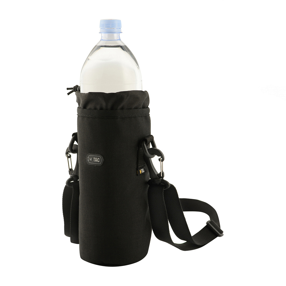 Pouzdro na láhev Cover Strap od značky M-Tac je praktickým doplňkem, který pojme moderní termosku nebo standardní 1,5litrovou láhev na vodu. Je vyrobené z vysoce kvalitního materiálu 500D Cordura – odolné tkaniny odolné proti oděru a vysoké zátěži. Krk pouzdra je stažen elastickou šňůrkou a bezpečně upevňuje láhev. U tohoto modelu výrobce použil také termoizolační materiál, který vytváří efekt termosky. Rozhraní MOLLE umožňuje připevnit pouzdro k vybavení nebo k opasku. Navíc díky dlouhému popruhu jej lze nosit přes rameno.