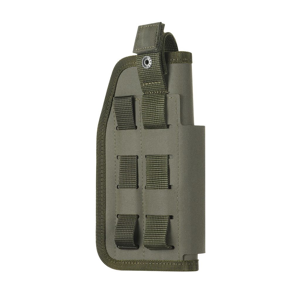 Univerzální taktické pouzdro M-Tac je vyrobeno z laminovaného materiálu Cordura 500D technologií Laser Cut. Je velikostně nastavitelné a pasuje na většinu pistolí od PM po Fort-14TP a také Glock 17.