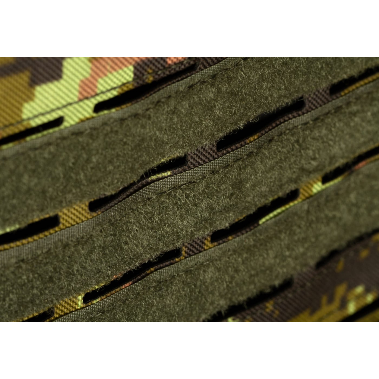Vesta pevně drží, je přichycena kolem pasu pomocí popruhů na suchý zip a dalšími MOLLE prvky po stranách.
