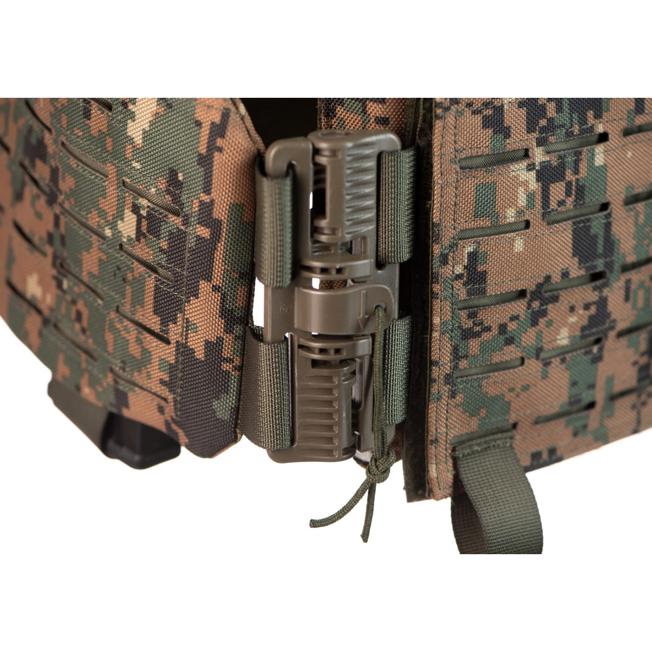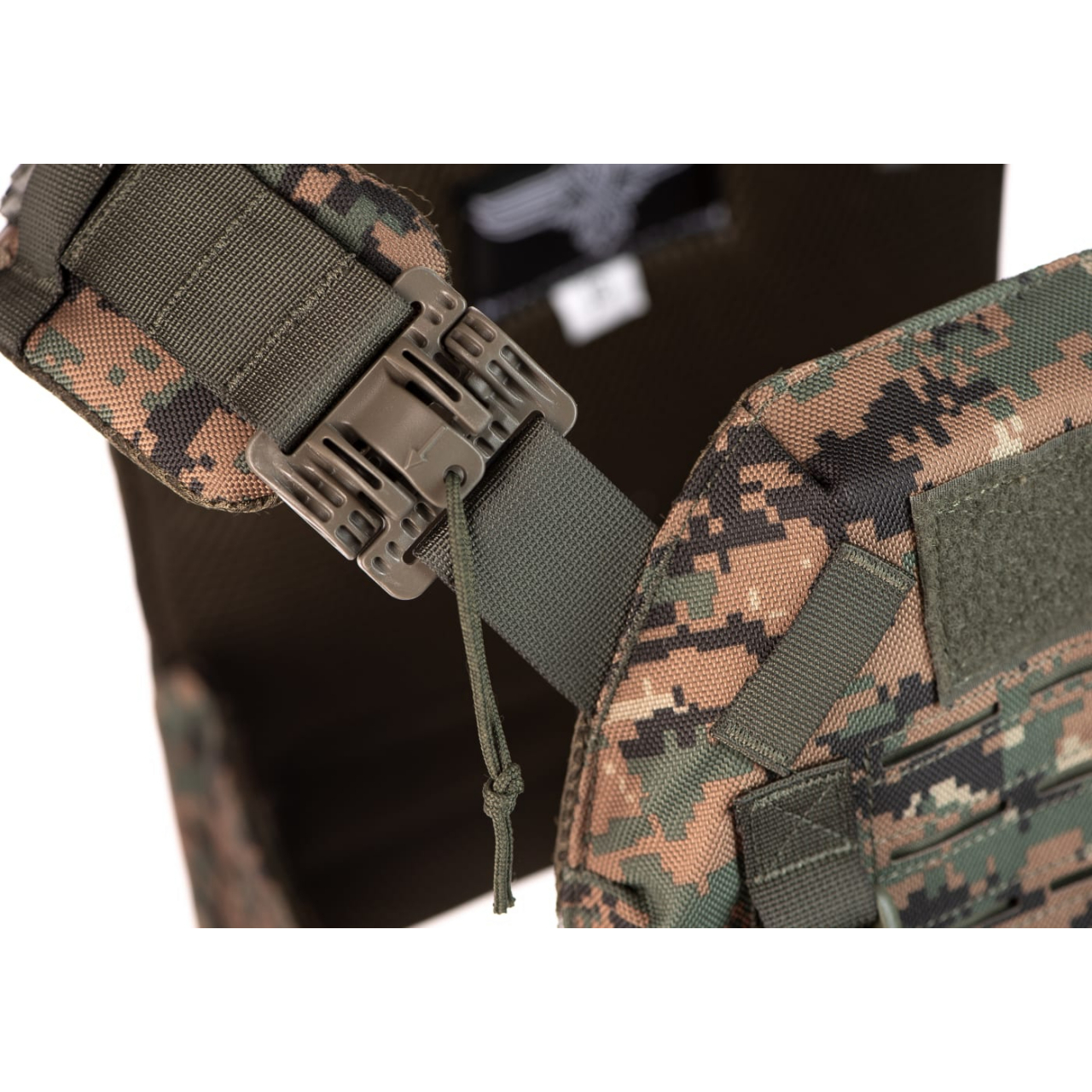 - vesta pevně drží, je přichycena kolem pasu pomocí popruhů na suchý zip a dalšími MOLLE prvky po stranách