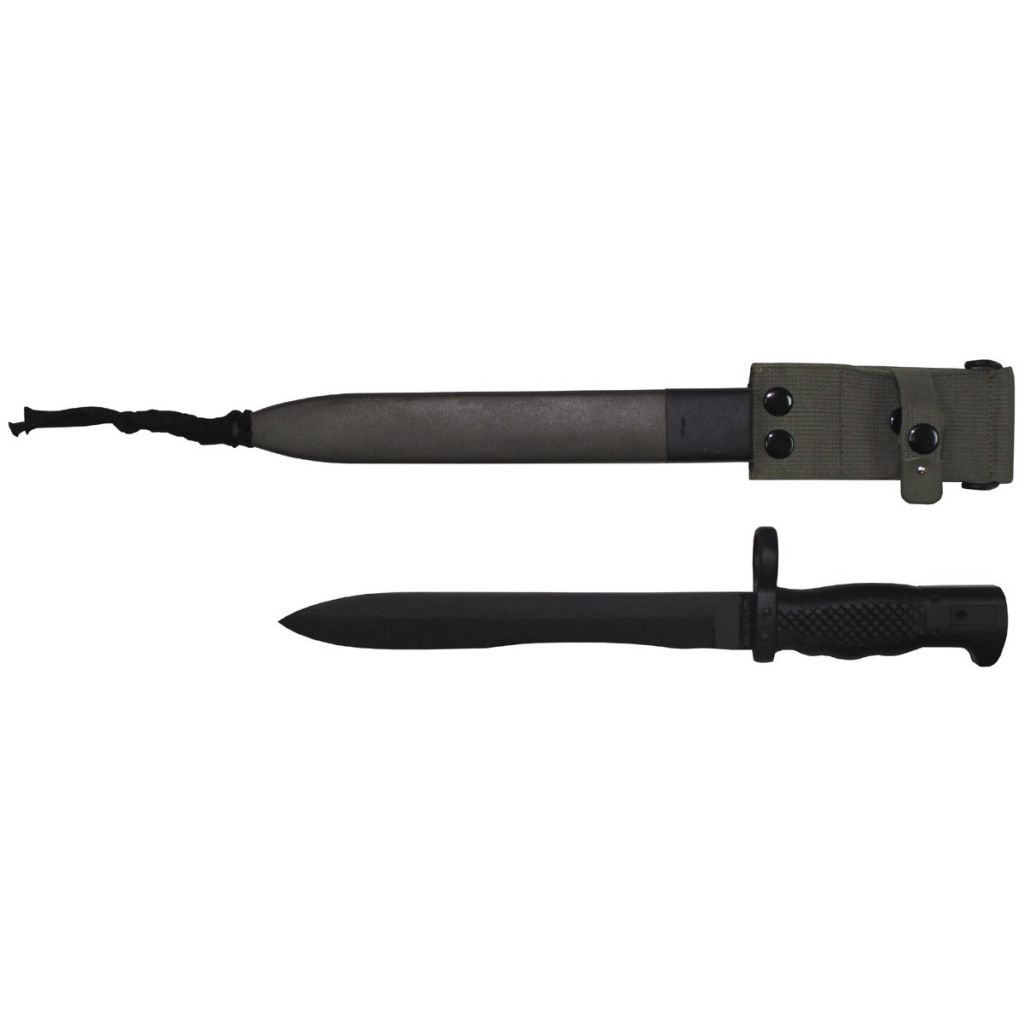 Kvalitní originální armádní bajonet s pevnou čepelí.