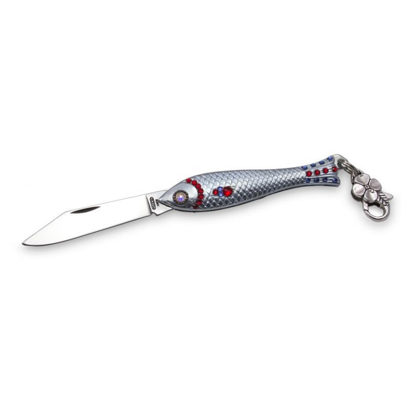Tato Rybička patří mezi kapesní zavírací nože, které jsou ručně zdobené kamínky Preciosa a proto je zařazena do kategorie dekorativních předmětů.
