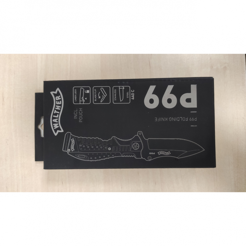Velký masivní nůž vzhledově odpovídající pistoli Walther P99.