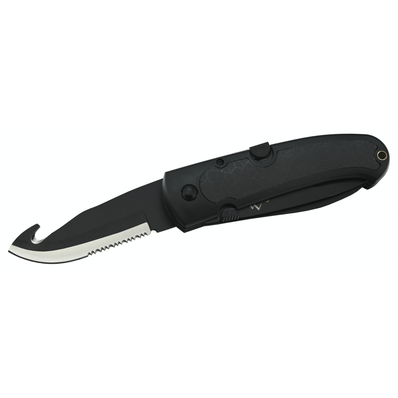 Nůž je vybaven dvěma pojistkami, umístěnými na bocích těla.
