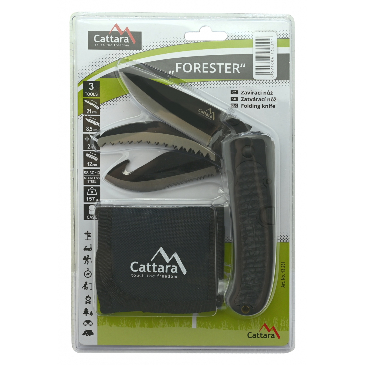Nůž Forester 3v1 je užitečný pomocník pro camping, rybaření a další outdoor využití. Je opatřen třemi druhy ostří (klasický nůž, pilka, a univerzální nůž s ozubením a břitem pro řezání menších provazů, nebo plastových pásek.