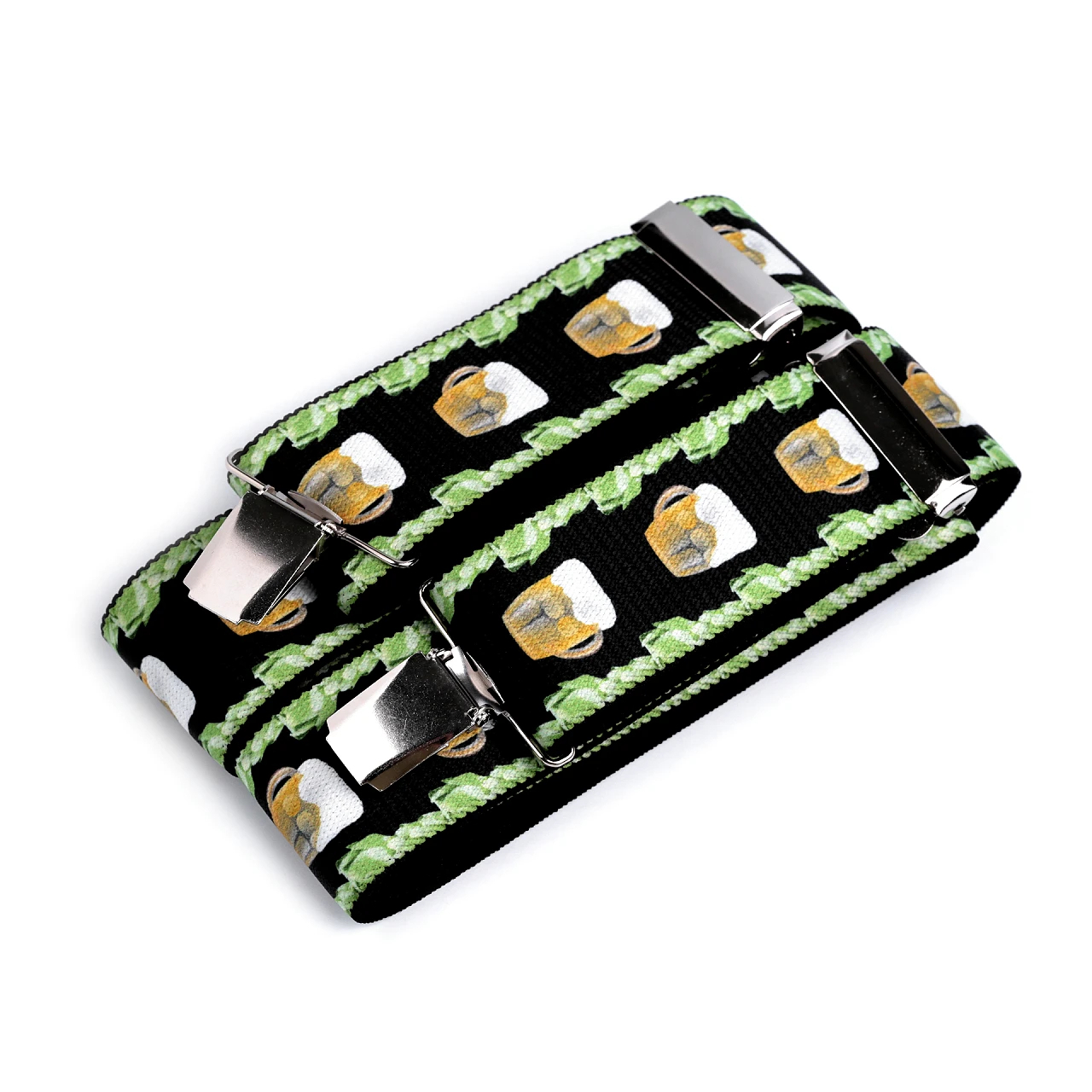 Šle pivařské šíře 4 cm Půllitry a chmel – černé-zelené