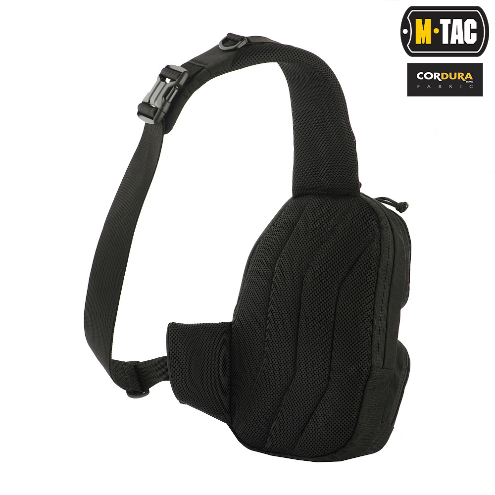 Batoh přes 1 rameno Buckle Bag Elite Black od značky M-Tac se skládá ze dvou vnějších kapes a přihrádky pro skryté nošení zbraní.