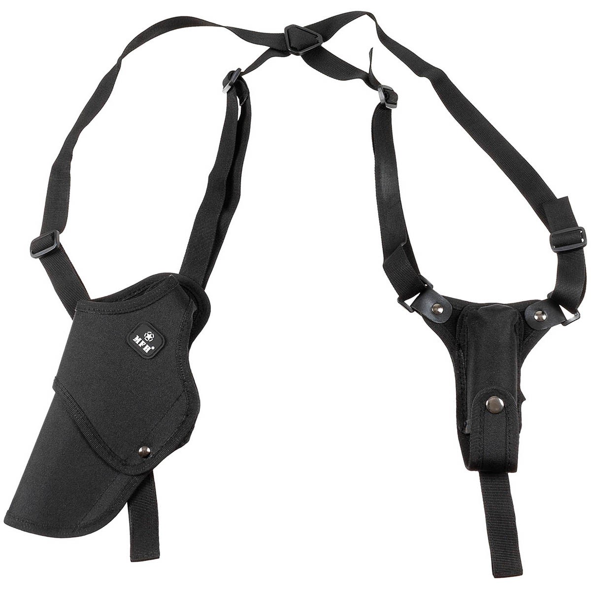 Velice oblíbené podpažní pouzdro, které má velikostně nastavitelné křížové popruhy přes záda. Dále se upevňuje nylonovými pásky k opasku (zapínání na suchý zip).