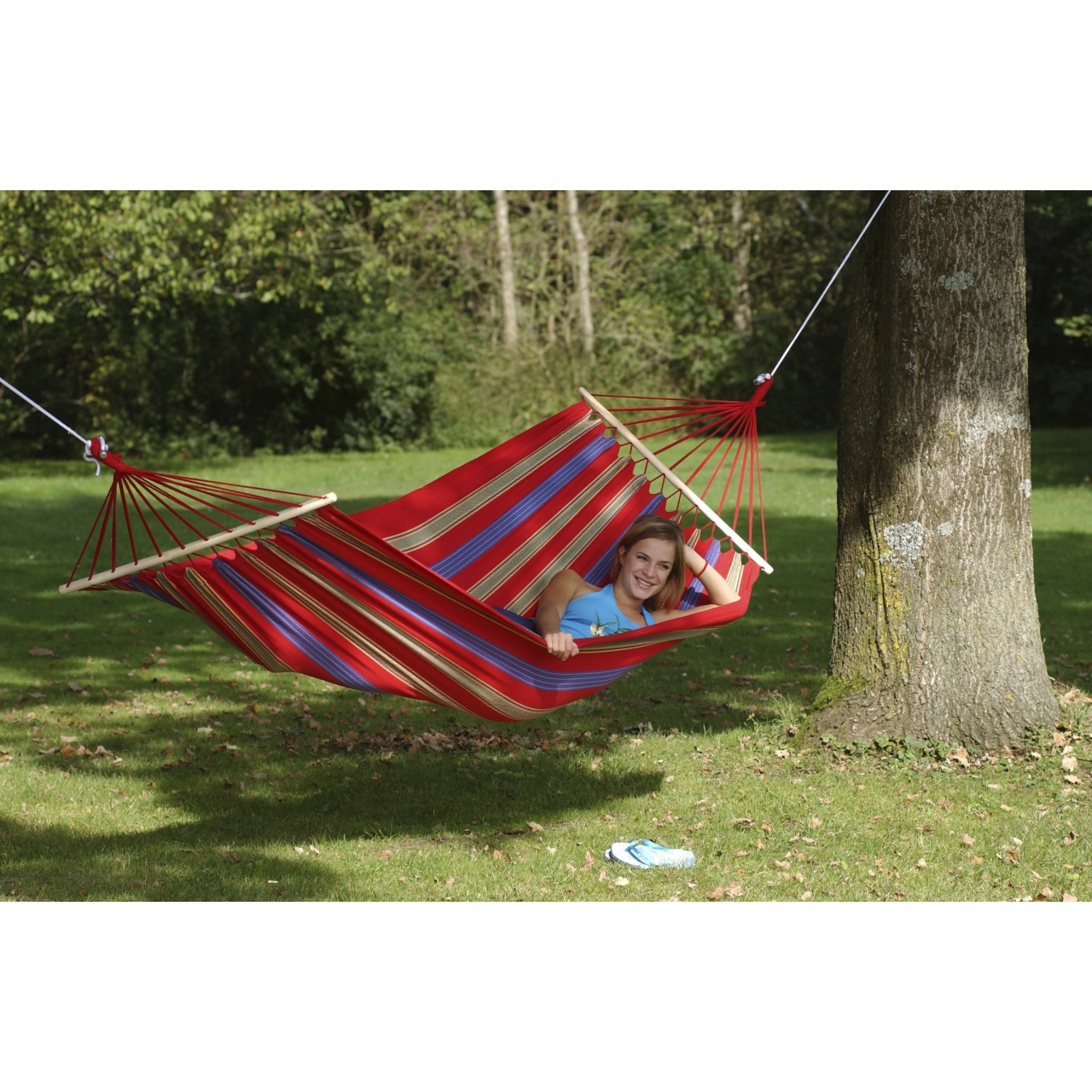 Houpací síť Amazonas Aruba – červená-modrá