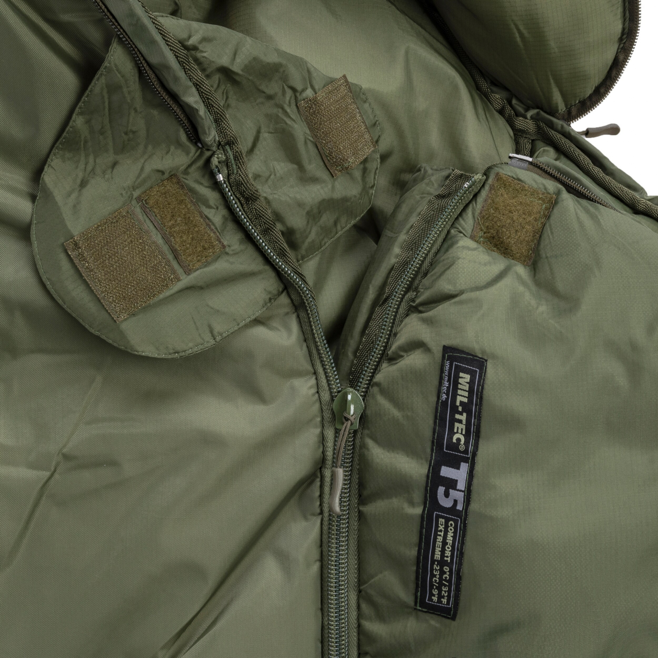 Thermolite – high-tech izolace pro extrémní tepelnou ochranu (vynikající tepelně izolační vlastnosti s nízkou hmotností a vysokou odolností). 2-pásmový zip s krytem (Velcro). Kapuce s límcem a šňůrkou. Uvnitř kapsa s moskytiérou. Včetně kompresního vaku.