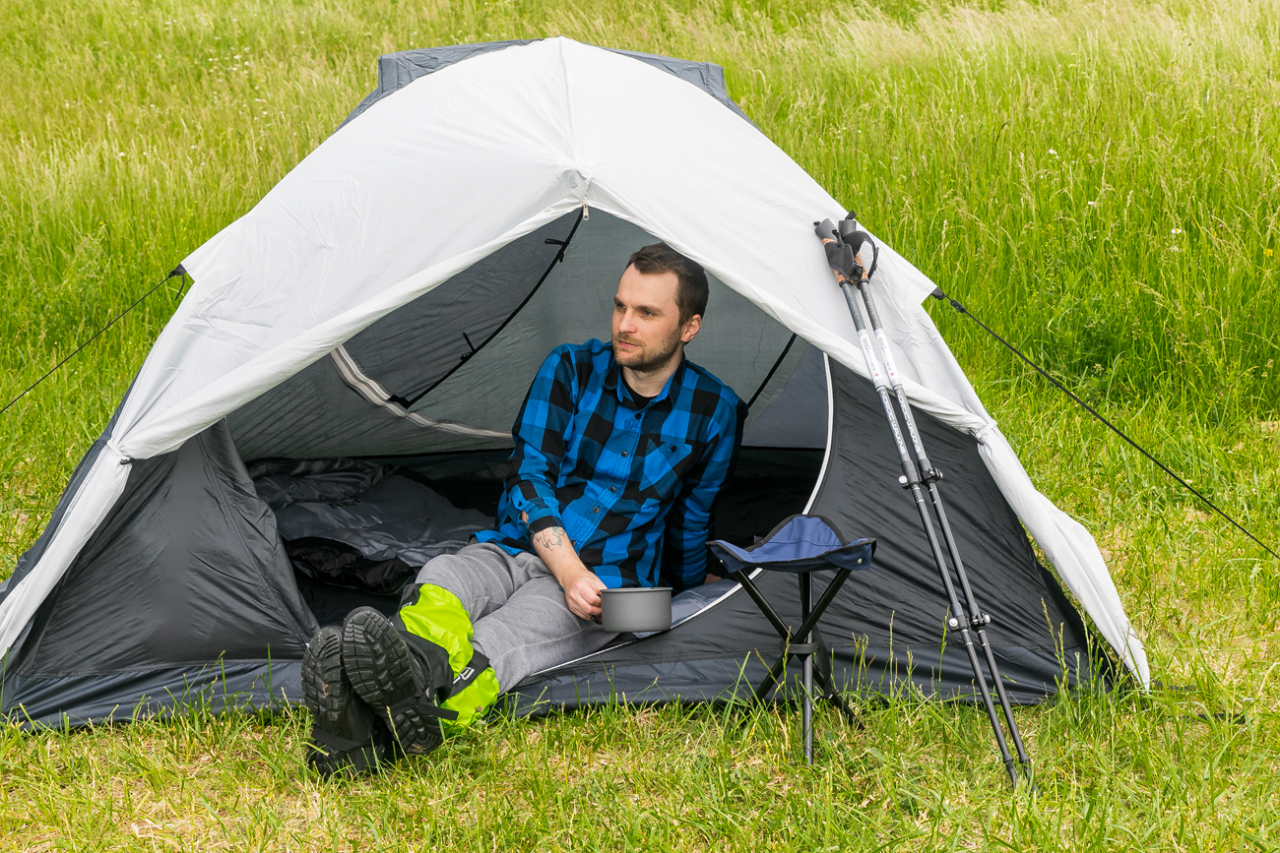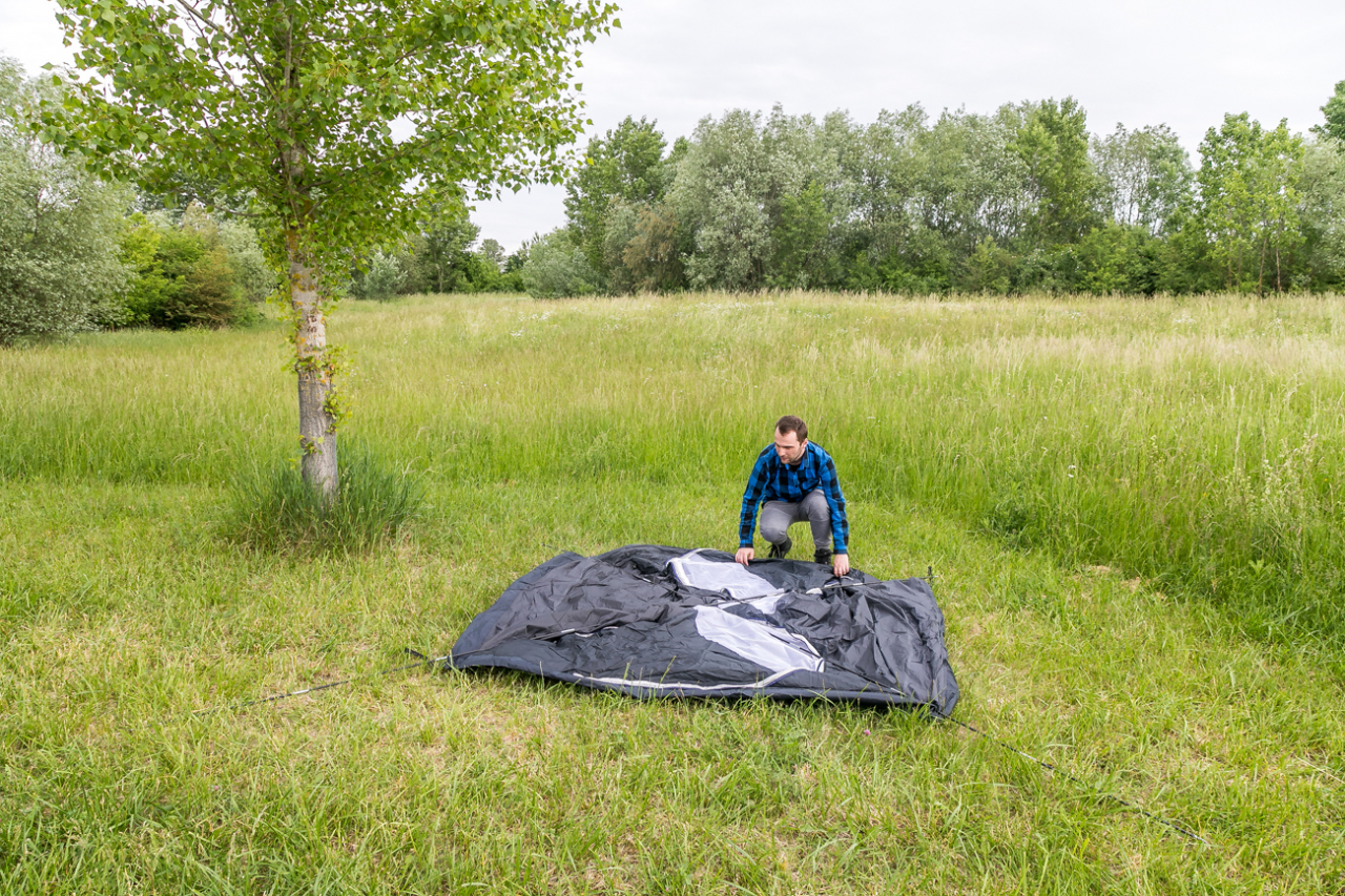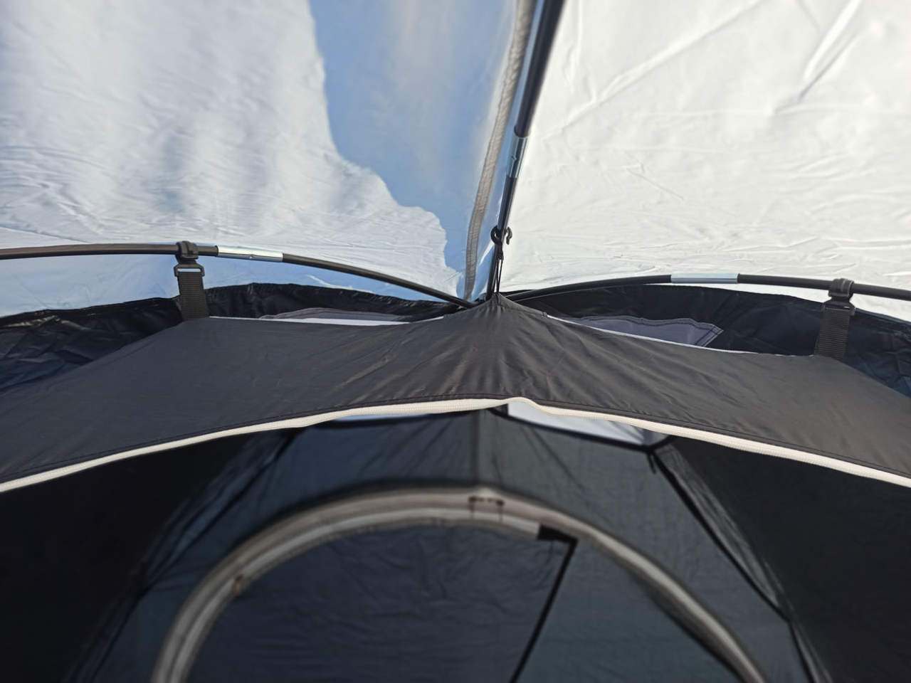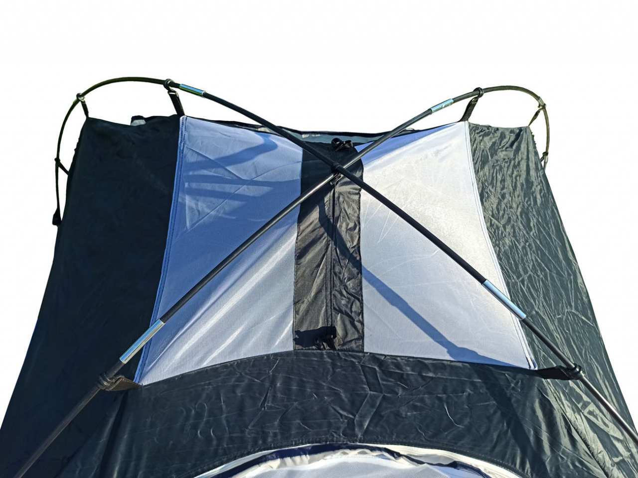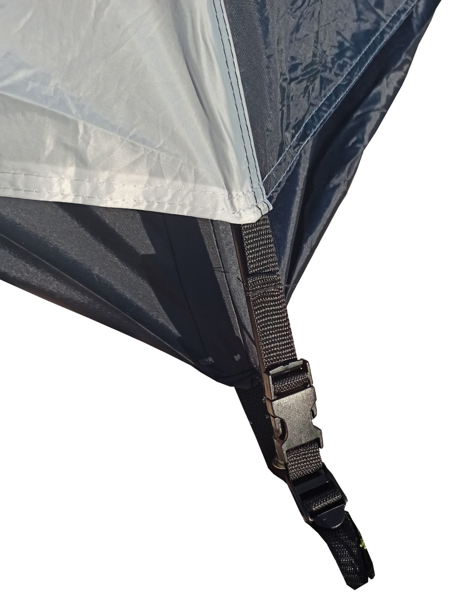 - má závěsnou ložnici a vrchní plášť přetažený přes sklolaminátové nosné pruty