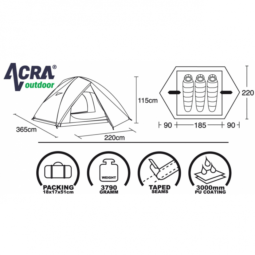 Stan pro 3 osoby od značky Brother. Jedná se o dvouplášťovou kopuli s předním a zadním vchodem (zavěšená ložnice a oddělený vrchní plášť).