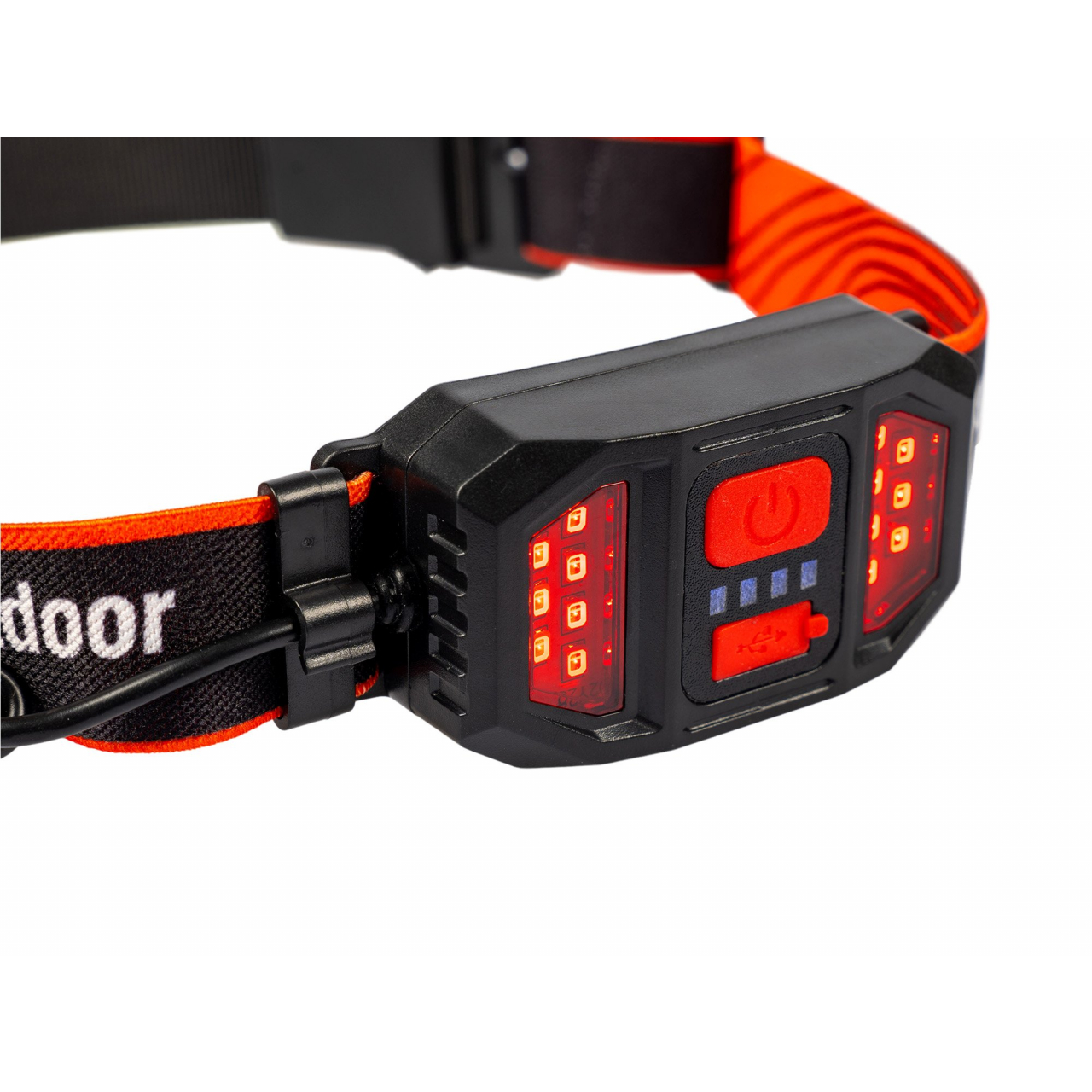 Čelovka nabízí tři režimy svícení: silné světlo, slabé světlo a blikání. Mezi režimy snadno přepínáte stisknutím hlavního spínače, což vám umožní přizpůsobit intenzitu světla aktuálním potřebám. Zadní červené světlo se synchronizuje s hlavním světlometem pro zvýšenou bezpečnost, což je skvělé například pro pohyb po silnici nebo v táboře v noci.