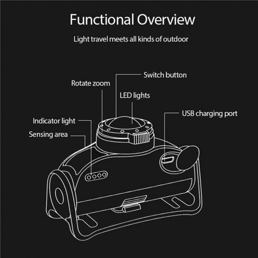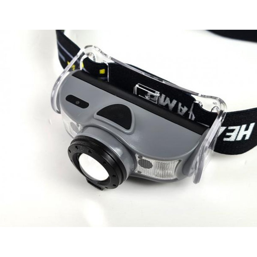 Výkonná dobíjecí LED čelovka se ZOOM reflektorem a sensorem pohybu, odolná proti vodě a nepříznivým povětrnostním podmínkám. Vhodná pro outdoorové aktivity. Je určena k nošení na čele, přilbě či helmě při běhu, jízdě na kole, práci a dalších aktivitách. Díky 2 typům LED žárovek svítí bílým světlem reflektorově s nastavením úhlu vyzařovaného světla a plošně s červeným světlem.