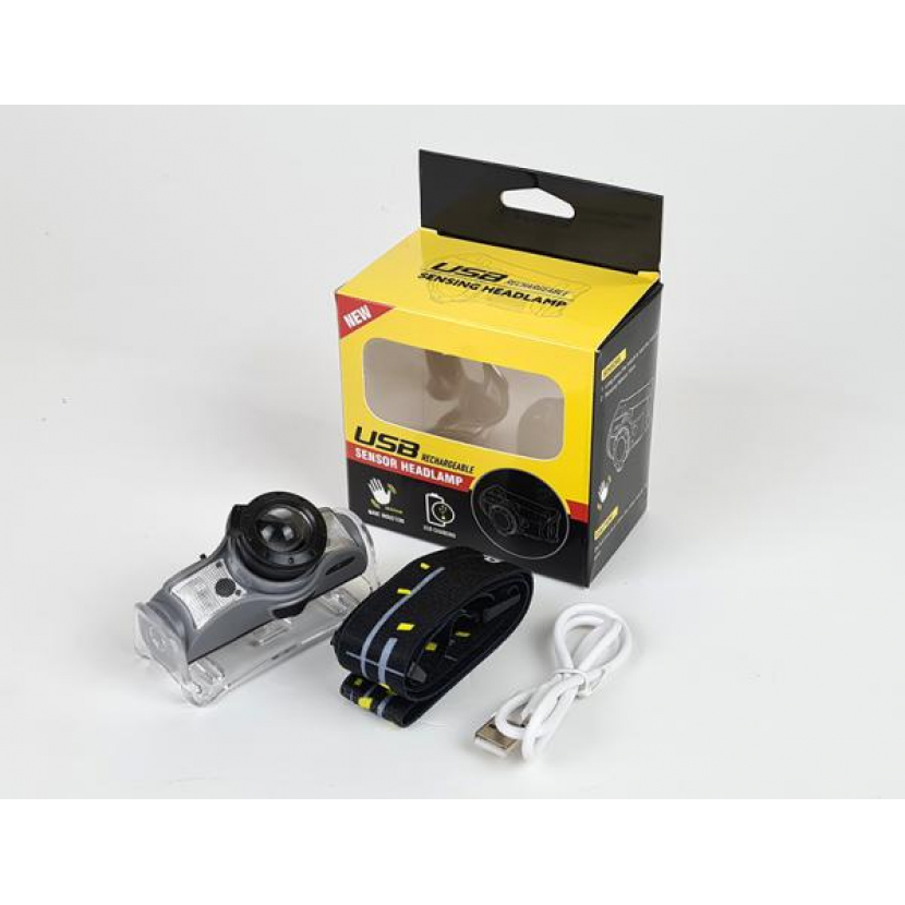 Dobíjecí čelovka se senzorem pohybu – černá-stříbrná