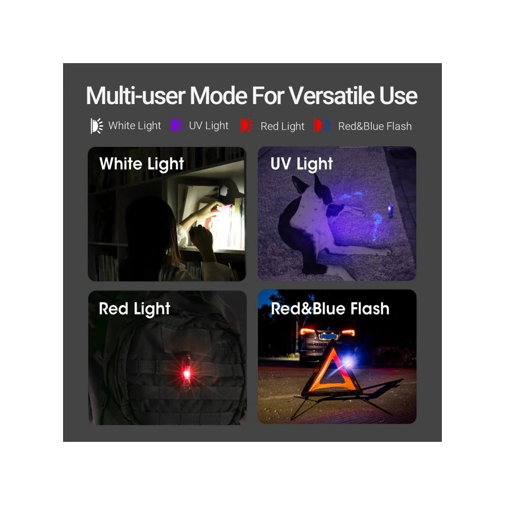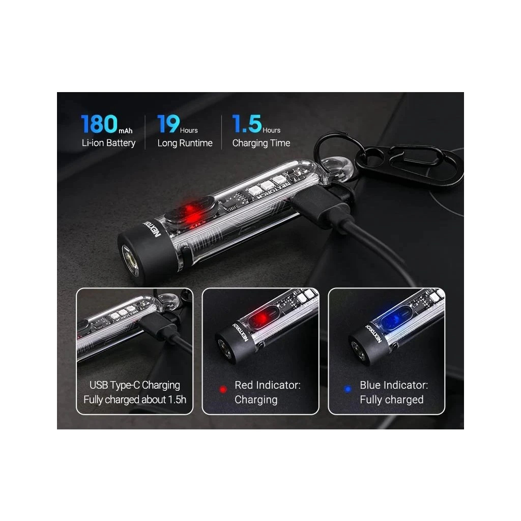 Nextorch K40 je kompaktní kapesní svítilna, kterou si můžete zavěsit na klíče a mít ji neustále po ruce. Navzdory svým malým rozměrům však dokáže vyvinout světlo o síle až 300 lm s dosvitem 78 m. Na výběr máte z několika barevných módů (bílá, červená, červeno-modré blikání a UV) a dokonce nechybí ani funkce stroboskopu se světelným tokem 700 lm.