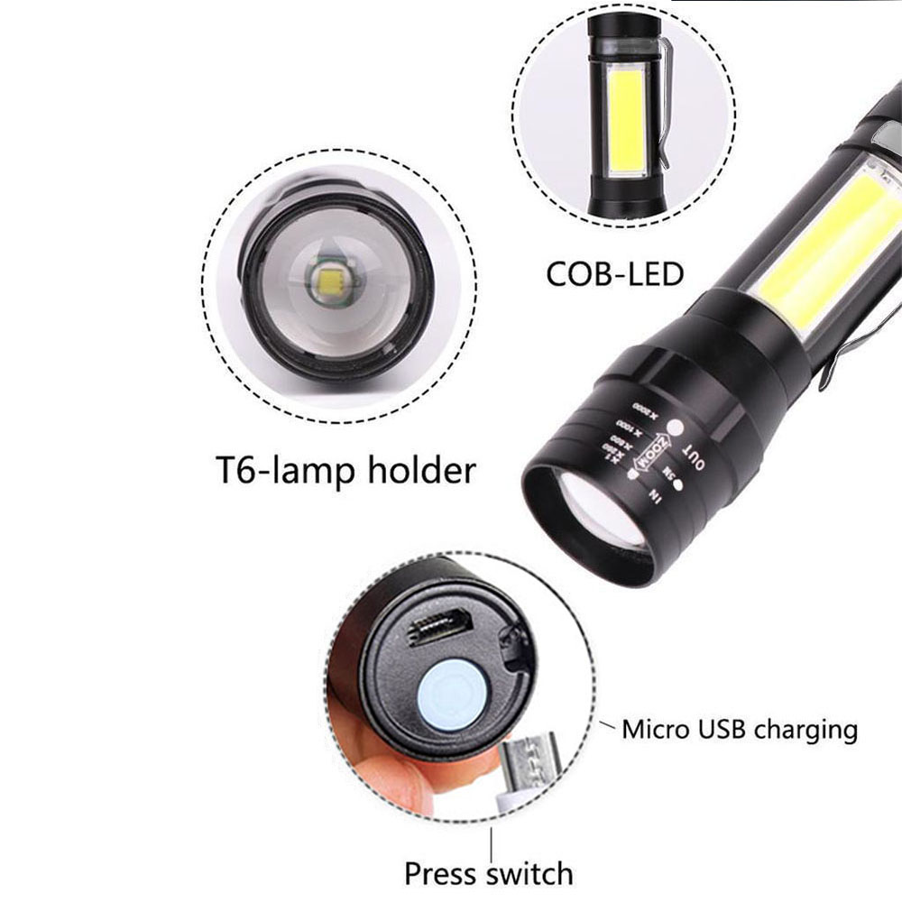 Přenosná dobíjecí kovová svítilna se skvěle hodí na cestování, procházky lesem nebo rybaření. Svítilna disponuje ZOOM světlem a plošným světlem COB na rukojeti. Součástí balení je USB nabíjecí kabel, možnost dobíjení ze sítě.